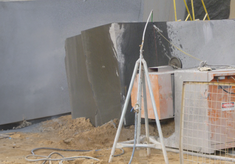 Na jazida de Baunilha, município de Colatina (ES), a 100 km de Vitória, capital do Espírito Santo, são movimentados mensalmente cerca de 4.000 m3 de blocos de granito preto, graças à boa qualidade geológica da jazida, seleção rigorosa das rochas, profissionalização da administração, e também ao trabalho de operadores altamente qualificados de máquinas pesadas e de fio diamantado com o apoio de uma bem treinada equipe de retaguarda.